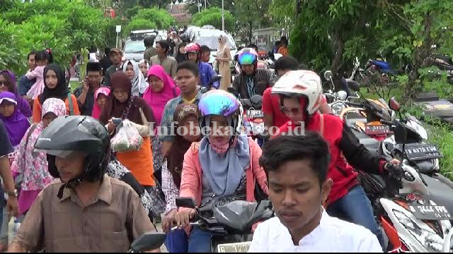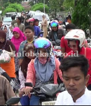 Banyaknya warga yang datang untuk berziarah, membuat arus lalu lintas di area dalam TPU Perwira menjadi padat.