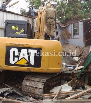 BEKASI UTARA – Ratusan bangunan liar yang berada di pinggiran Kali Irigasi, Kampung Rawa Bambu, Kelurahan Harapan Jaya, Kecamatan Bekasi Utara, Kota Bekasi, dibongkar petugas Satpol PP, Senin siang (30/05).
