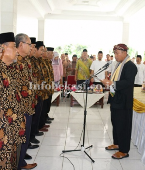 BEKASI SELATAN – Wali Kota Bekasi, Rahmat Effendi, Jumat pagi (14/10), mengukuhkan Majelis Umat Beragama Kecamatan Mustikajaya dan Kecamatan Bantargebang. Acara pengukuhan ini dihadiri oleh para staf ahli wali kota, ketua Forum Kerukunan Umat Beragama (FKUB) Kota Bekasi, H. Abdul Manan, serta Camat Mustikajaya, Aty Rostaty, dan Camat Bantargebang, Asep Gunawan, serta Tokoh agama mewakili kelurahan masing- masing.