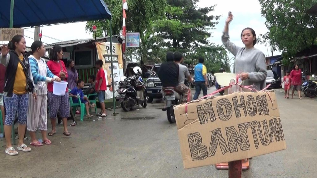 Ayu (24), salah satu warga Kampung Bebek mengaku, ia bersama ibu-ibu yang menjadi korban banjir berinisiatif turun ke jalan untuk meminta sumbangan, meski sudah mendapatkan bantuan berupa mie instan dan beras dari kelurahan.