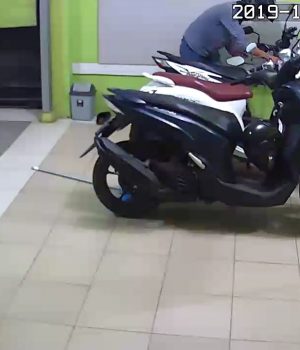 Dalam rekaman kamera CCTV yang berada di rumah korban itu, pelaku menggunakan helm dan berbaju biru, mengambil salah satu dari 3 motor yang terparkir. Adapun pelaku beraksi sekitar pukul 03.52 WIB ketika penghuni rumah masih tidur.