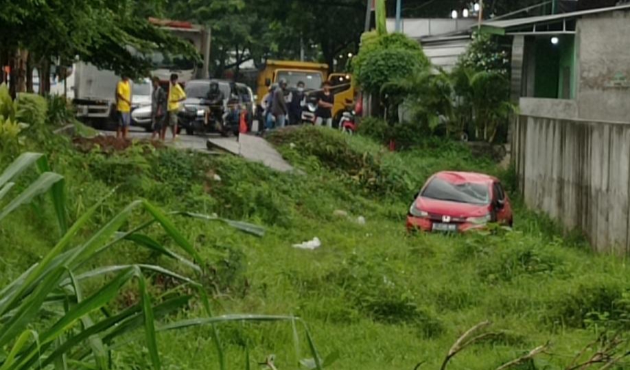Seorang saksi melaporkan, kejadian terperosoknya mobil ke jalan amblas akibat abrasi tanggul Kali Bekasi pada malam ini. Dikabarkan, mobil sempat terbalik, penumpangnya lalu diselamatkan oleh warga, lalu mobilnya dikembalikan ke posisi normal.