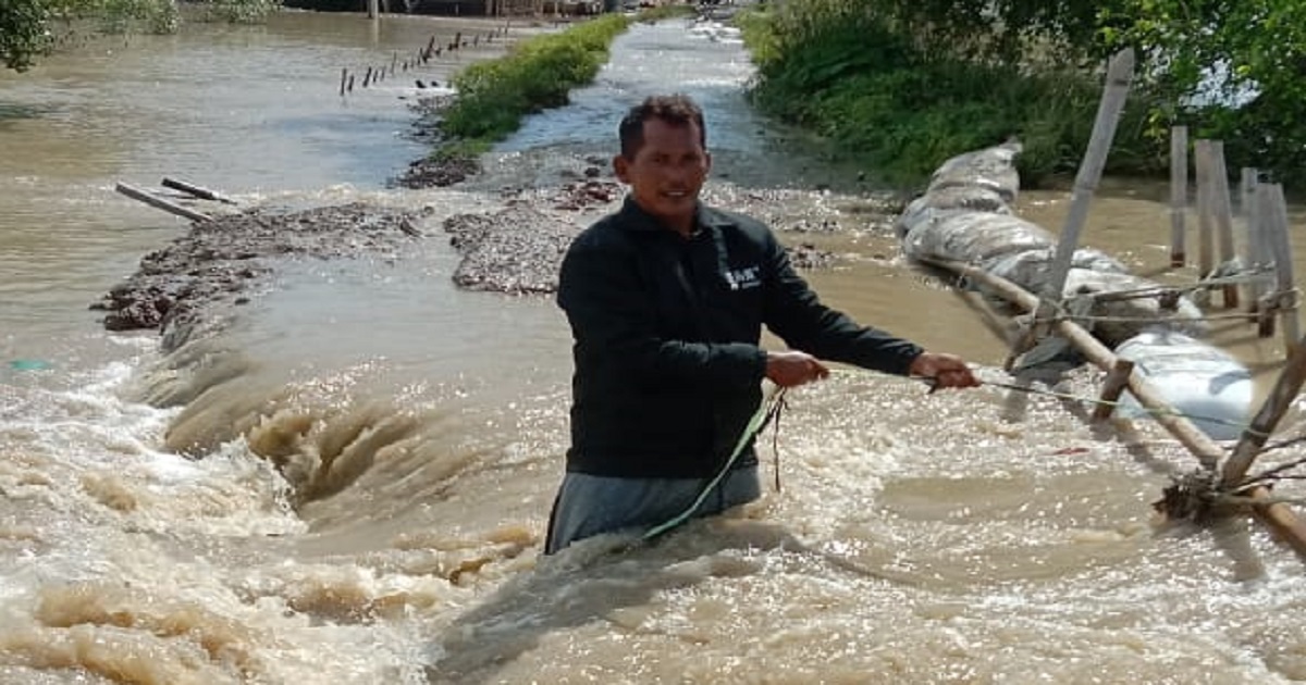 Infobekasi.co.id – Pemukiman warga di Desa Pantai Bahagia, Kecamatan Muaragembong, Kabupaten Bekasi, terendam air karena Sungai Citarum meluap. Ketinggian air di dalam rumah saat ini sudah mencapai 20 sentimeter.