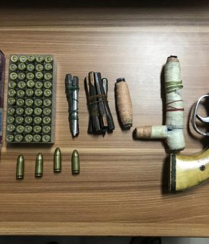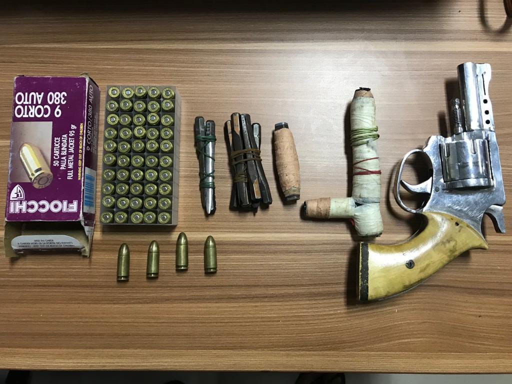 Petugas langsung melakukan penggeledahan, ditemukan satu pucuk senjata api rakitan, berjenis revolver dan empat butir peluru, satu sepeda motor diduga hasil pencurian, kunci letter T, tujuh buah mata kunci, dan satu buah kunci magnet.