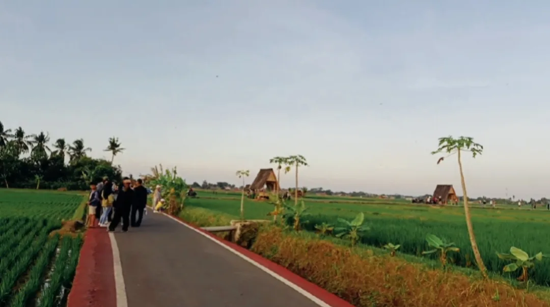 Di sekelilingnya, hamparan sawah membentang luas, hijau royo-royo, memanjakan mata dan menenangkan jiwa. Pohon-pohon rindang menjadi peneduh alami, mengundang burung-burung kecil untuk bercicit riang. Setiap sudut desa ini adalah kanvas hidup yang menampilkan harmoni antara manusia dan alam.