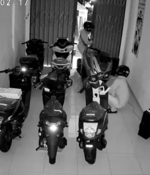 Rekaman CCTV memperlihatkan, dua orang mengenakan helm masuk dengan membuka paksa rolling door. Kedua orang itu, mengambil motor dan membawa kabur.
