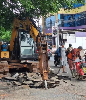 Saat ini, tengah dilakukan pembongkaran material aspal yang rusak, yang selanjutnya akan diikuti dengan proses pengecoran menggunakan metode fast track (beton).