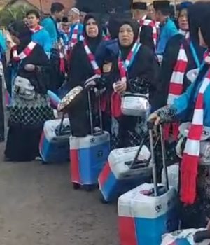 ifobekasi.co.id – Kelompok terbang (Kloter) pertama jemaah calon haji (Calhaj) Jawa Barat asal Kota Bekasi terlambat sekitar 30 menit dari jadwal ditetapkan. Rombongan tiba di area Embarkasi Jakarta-Bekasi pada pukul 07.40 WIB setelah berjalan kaki dari kawasan Islamic Center, Selasa (21/04/2026).