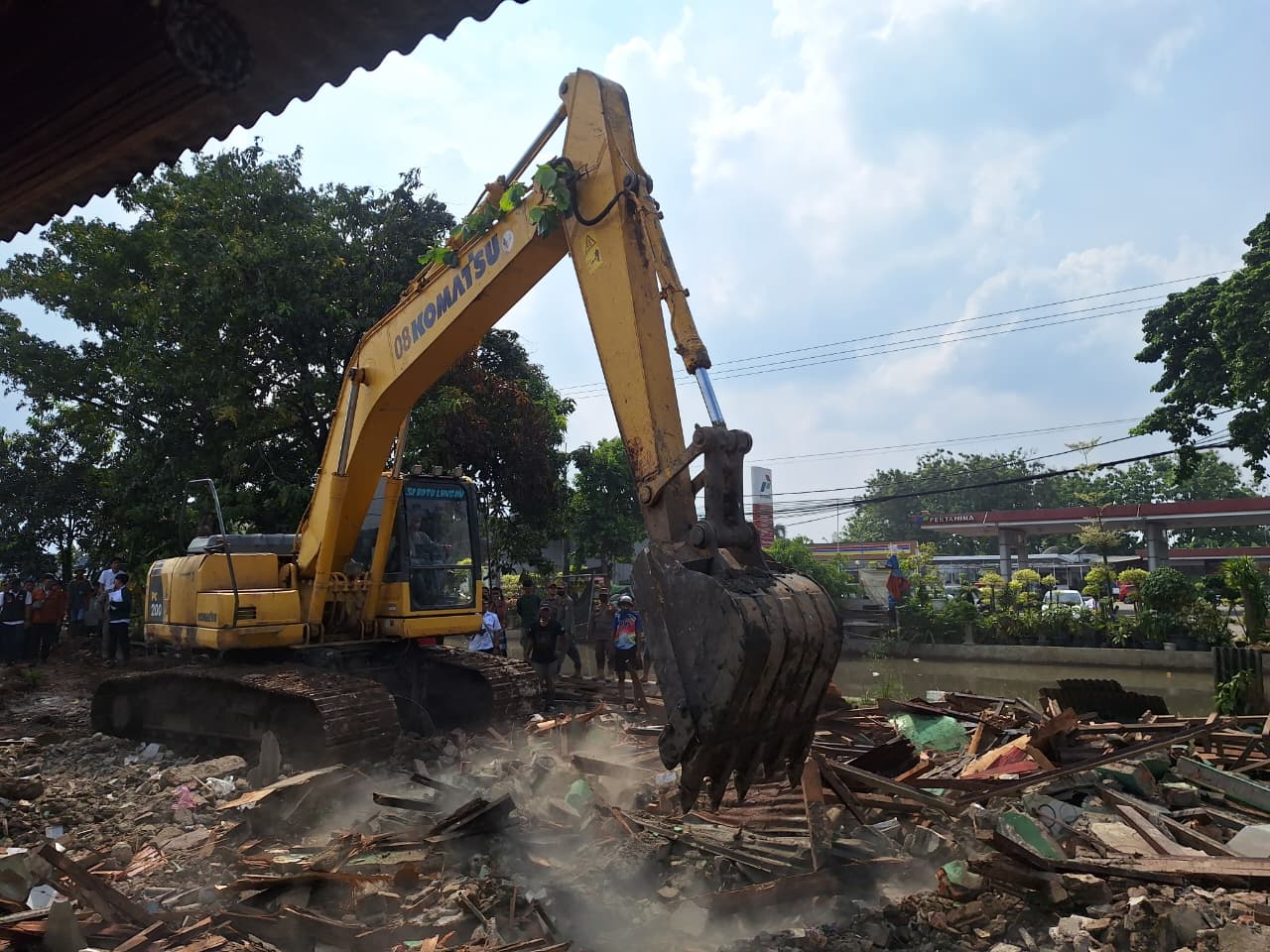 Dari 72 bangunan tersebut, mayoritas hunian semi permanen, sementara satu unit di antaranya berfungsi sebagai usaha cuci motor. Pembongkaran dilakukan sepanjang satu kilometer jalur irigasi.