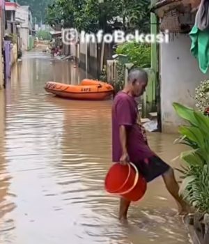 Infobekasi.co.id – Warga bermukim di Gang Mawar 6, Kelurahan Margahayu, Kecamatan Bekasi Timur, kembali dilanda genangan banjir akibat meluapnya aliran sungai pada Kamis pagi, 23 April 2026.