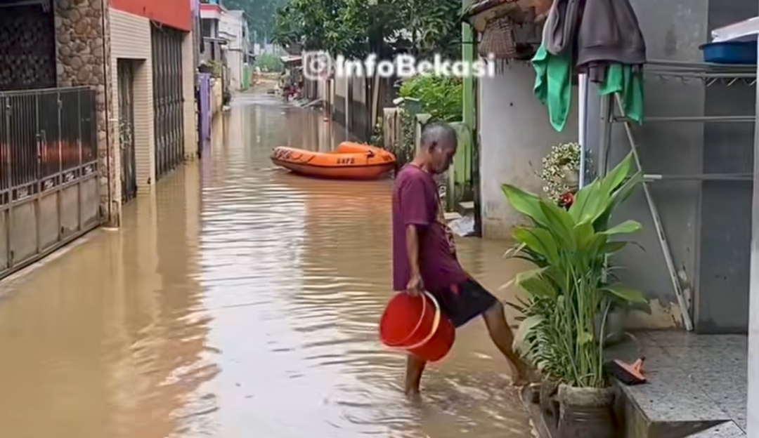 Meluapnya air di wilayah tersebut dipicu oleh kenaikan debit air Kali Bekasi yang menerima kiriman air dari arah Bogor melalui aliran Kali Cileungsi.
