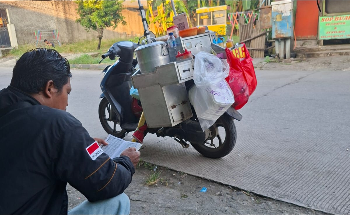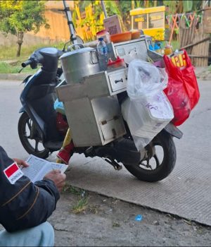 Ada sisi menyentuh hati dari sosok yang akrab disapa Bang Ali ini. Setiap pagi, sebelum mulai berkeliling, dirinya menyempatkan diri beristirahat sejenak di gerbang Perumahan Mangunjaya Indah 1. Di emperan toko fotokopi yang ada di sana, Dia menuntaskan bacaan Al-Qur’an.