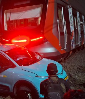 infobekasi.co.id – Mobil taksi listrik merek VinFast tertabrak kereta api Commuter Line (KRL) hingga terseret sekitar 100 meter di perlintasan rel kawasan Ampera, Kecamatan Bekasi Timur, Kota Bekasi, Senin malam (27/04/2026) sekitar pukul 21.00 WIB.