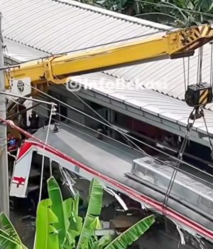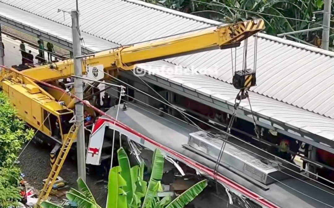 Infobekasi.co.id – Proses evakuasi dan pemindahan rangkaian Kereta Rel Listrik (KRL) Commuter Line yang tertabrak Kereta Api Argo Bromo Anggrek di wilayah Stasiun Bekasi Timur, membutuhkan bantuan satu unit alat berat pada Selasa (28/4/2026).